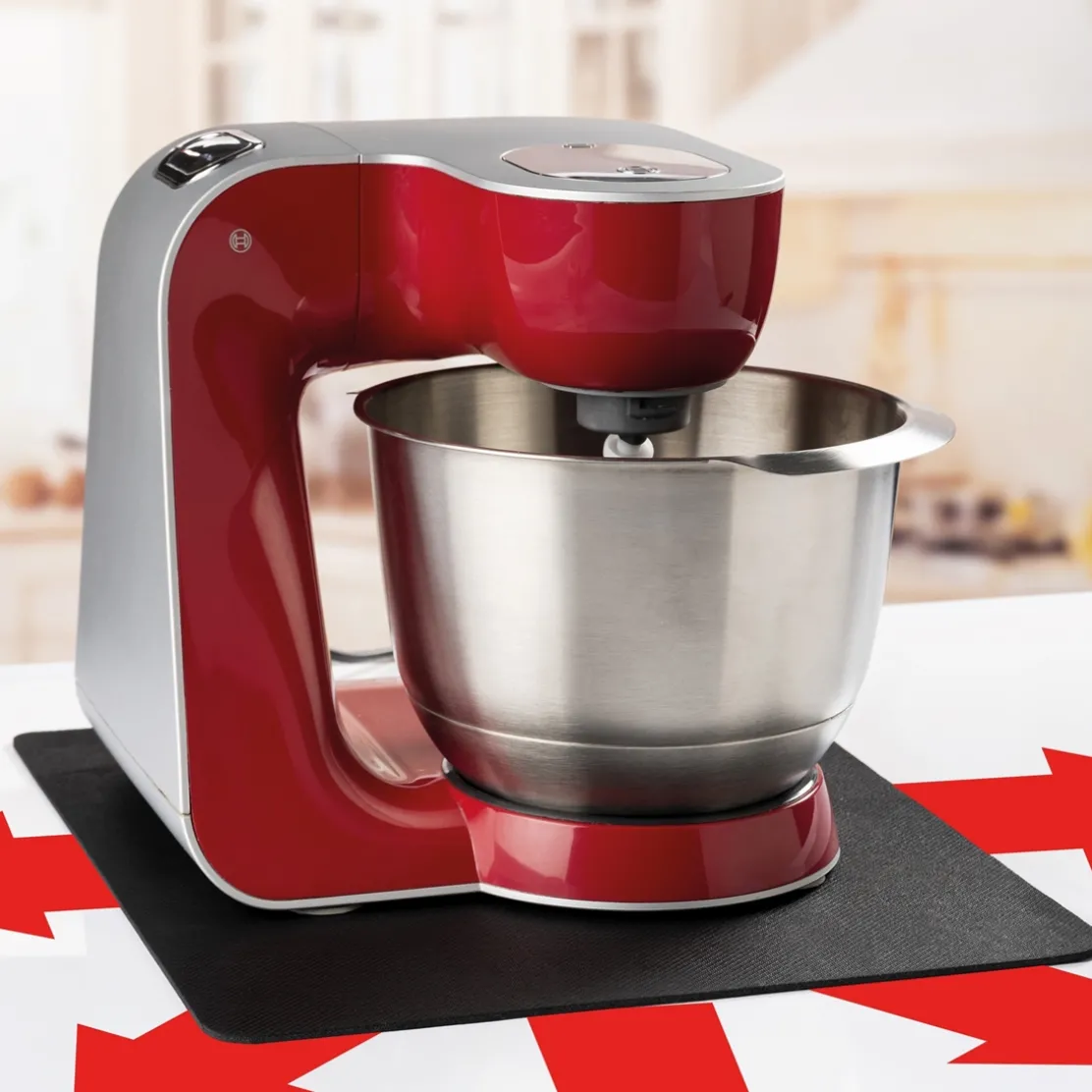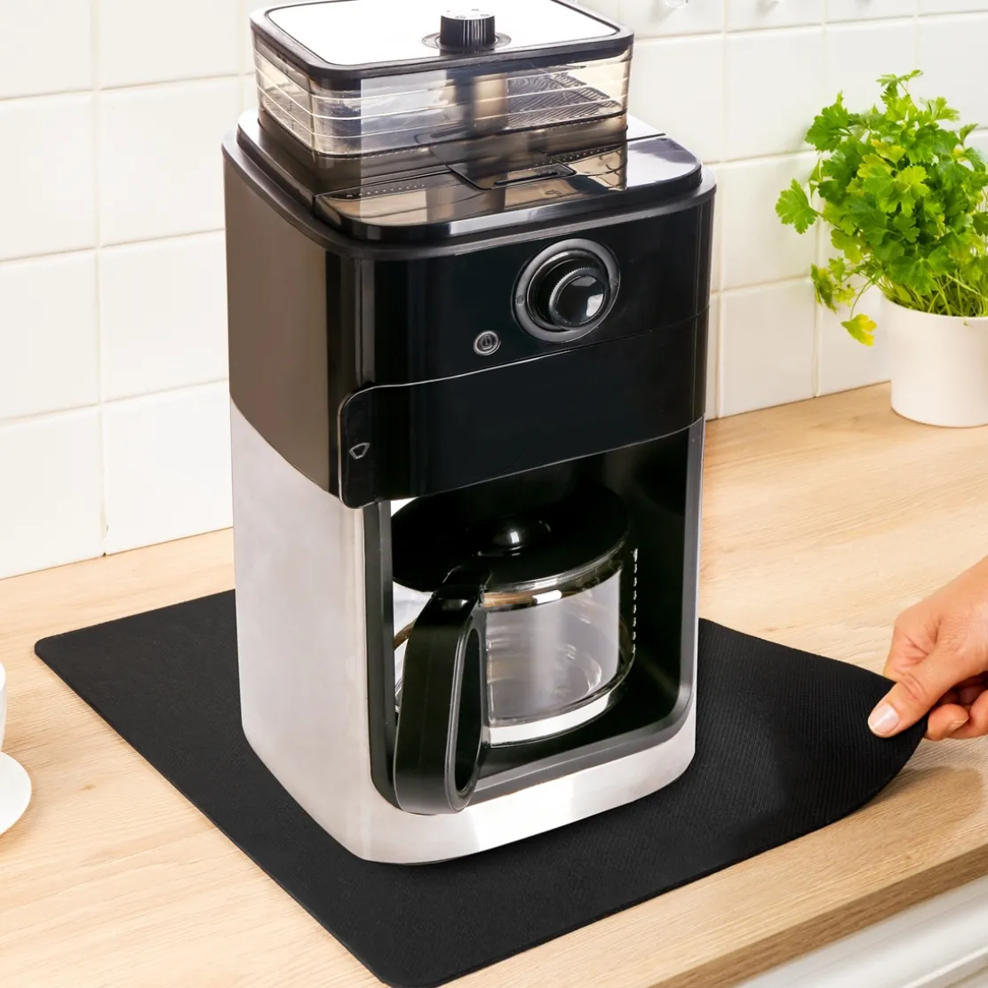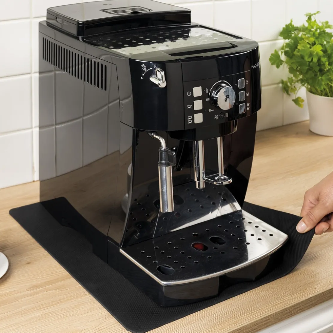 Pour gagner de la place sur le plan de travail, il arrive que l’on doive déplacer les appareils de petit électroménager. En glissant un de ces tapis sous votre cafetière, robot, mixeur, … vous pourrez les bouger en toute facilité ! Ces tapis sont découpables à la dimension souhaitée et bénéficient d’un côté lisse pour glisser sur le plan de travail et d’un côté adhérant pour que votre appareil reste parfaitement stable. En caoutchouc et élasthanne. Dim. 25 x 25 cm et 40 x 35 cm.