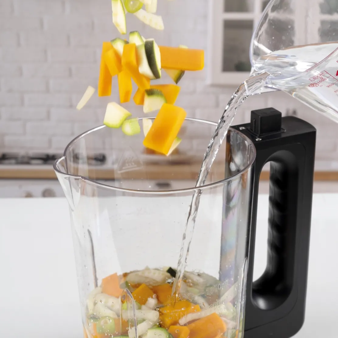 Veloutés, soupes et compotes seront rapidement préparés avec ce blender chauffant Milway Cooking nouvelle génération ! Facile à utiliser, il suffit d’y introduire les légumes épluchés et coupés, d’ajouter de l’eau et s’occupe de cuire, de mixer les ingrédients et de garder au chaud la préparation.