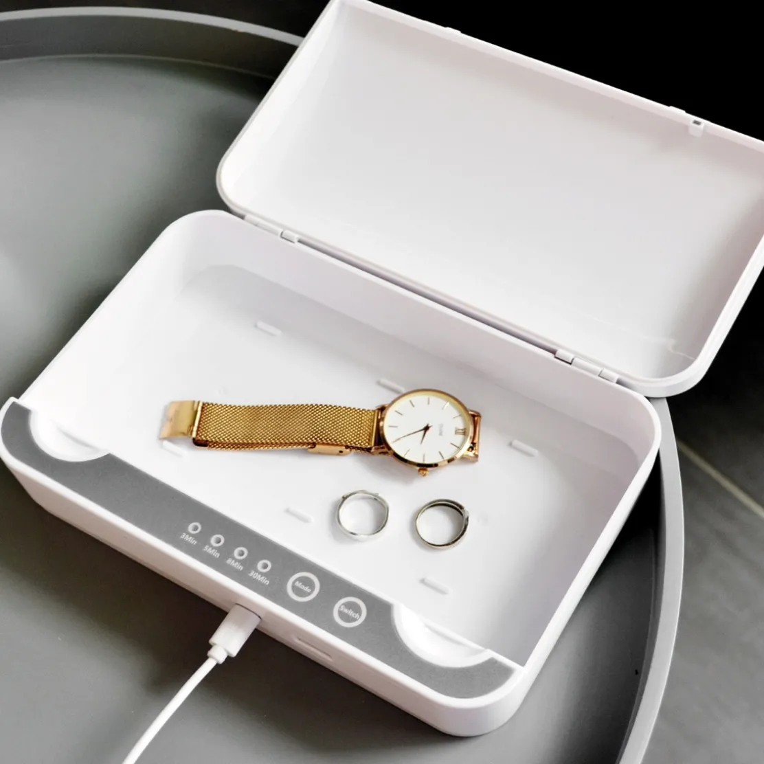 Cette boîte de stérilisation est incroyable : elle permet de désinfecter et stériliser tous vos objets du quotidien. Ainsi vos clés, lunettes, téléphones, masques réutilisables sont protégés des virus, des microbes, et vous aussi ! Il suffit de placer vos objets dans la boîte et de laisser agir. La technologie UV-C élimine 99% des bactéries et des virus. Chargement par câble USB. En matière plastique. Dimensions : 19,8 x 12,8 x 5,7 cm.
