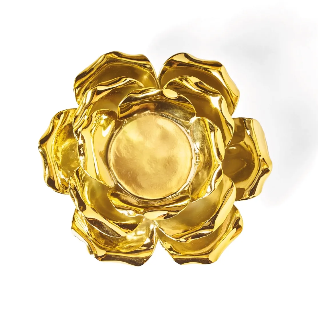 Beauté raffinée, la reine des fleurs s’épanouit sur ce bougeoir doré, superbement réalisé. Creusé pour y recevoir une bougie, il sera parfait pour briller de mille feux… et l’enchantement opèrera sur la table de noël ou pour un repas festif tout simplement !