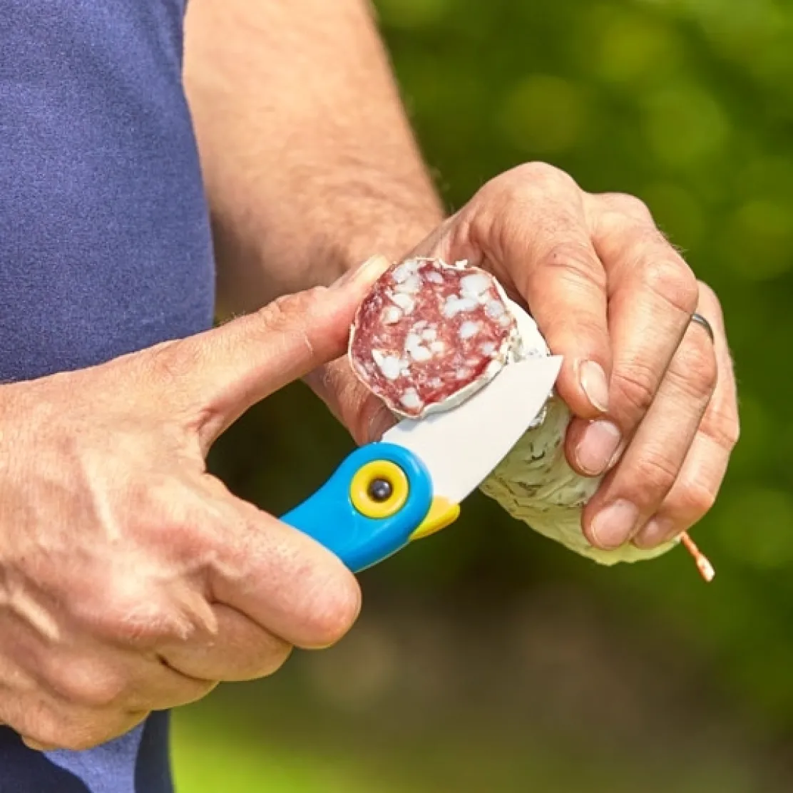 Les couteaux céramiques offrent des lames bien affûtées et leur durée de vie est infinie… Alors, vous aussi, découvrez et appréciez ses avantages avec cet étonnant modèle au joli design perroquet ! La surface de sa lame extrêmement lisse lui confère un tranchant incomparable sur tous types d’aliments, ainsi qu’une hygiène irréprochable. Il est également anticorrosif et ne donne aucun goût à la nourriture. Des années de coupe parfaites sans jamais affûter votre couteau ! Passe au lave-vaisselle. Plastique, lame céramique. Long. déplié 13 cm, lame 5,5 cm.