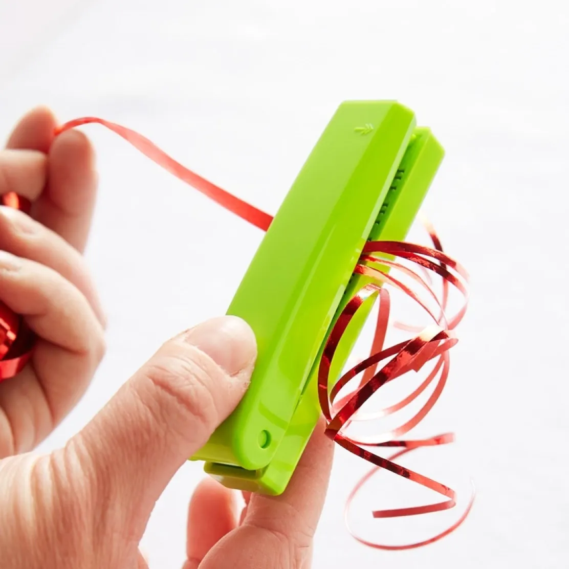 Avec l’aide de cet accessoire, vos emballages cadeaux seront aboutis jusqu’au moindre détail : insérez simplement le ruban dans l’effileur pour obtenir plusieurs petits rubans. En matière plastique et métal. Dimensions : 10 x 2 cm.