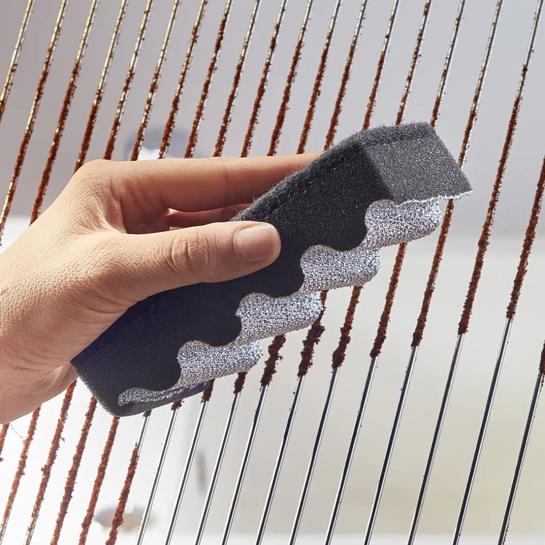 Grâce à une forme de vaguelettes et une face abrasive, elle assure un nettoyage efficace et facile sur toutes les faces de votre grille. L’éponge est parfaite pour venir à bout de la graisse brûlée, les restes de nourriture cuite…