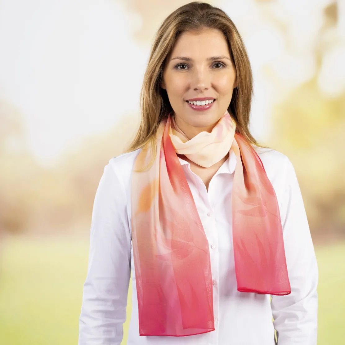 Nouée autour du cou ou juste délicatement posée sur les épaules, cette écharpe légère et colorée s’accorde aussi bien avec vos vêtements du quotidien qu’avec vos tenues plus habillées…Finitions ourlées.