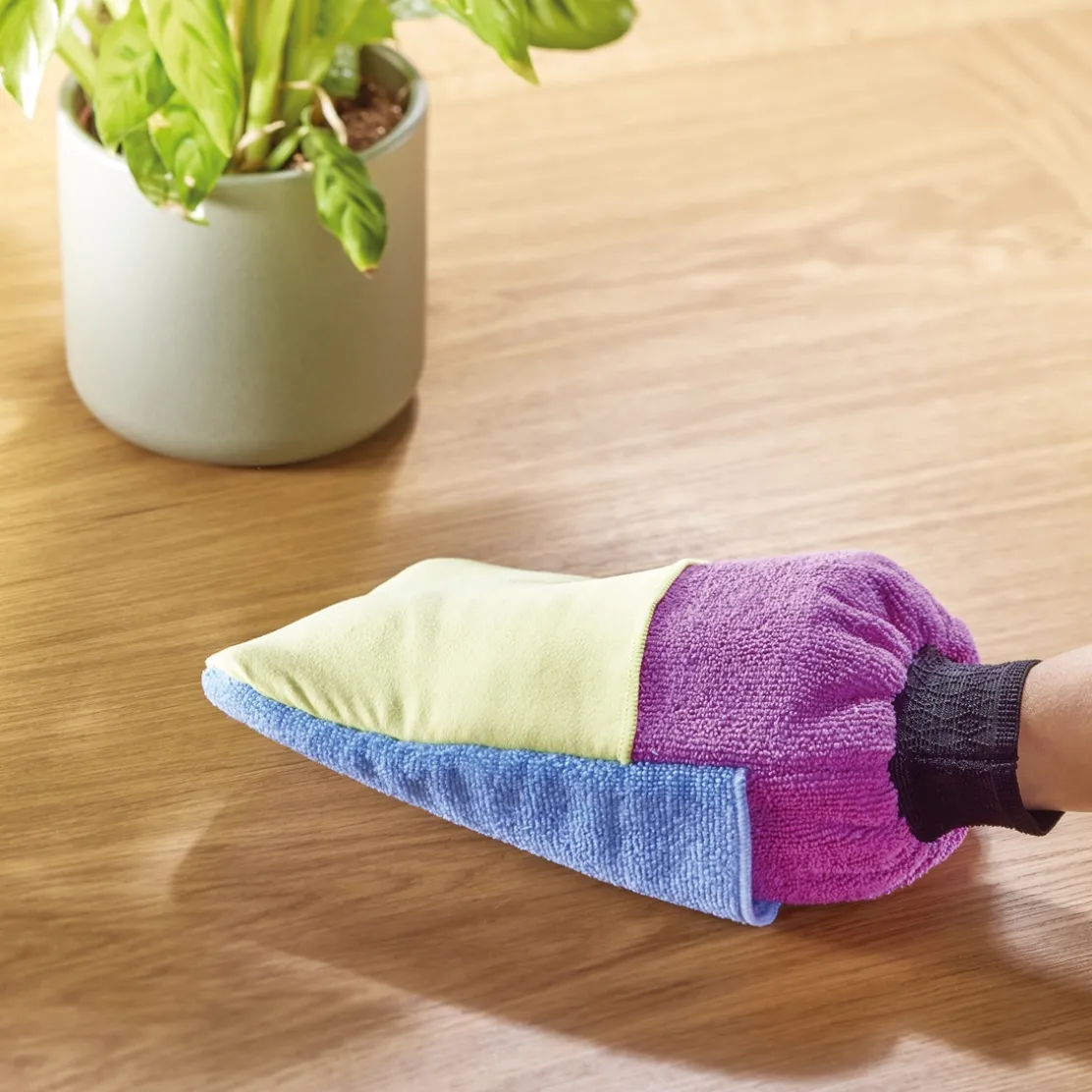 Ce gant de nettoyage est un allié exceptionnel qui vous facilite le ménage, grâce aux 3 couches de microfibres différentes qui le composent : il traque la poussière dans les moindres recoins, vient à bout de toute saleté, même tenace et permet aussi de polir les surfaces à faire briller.