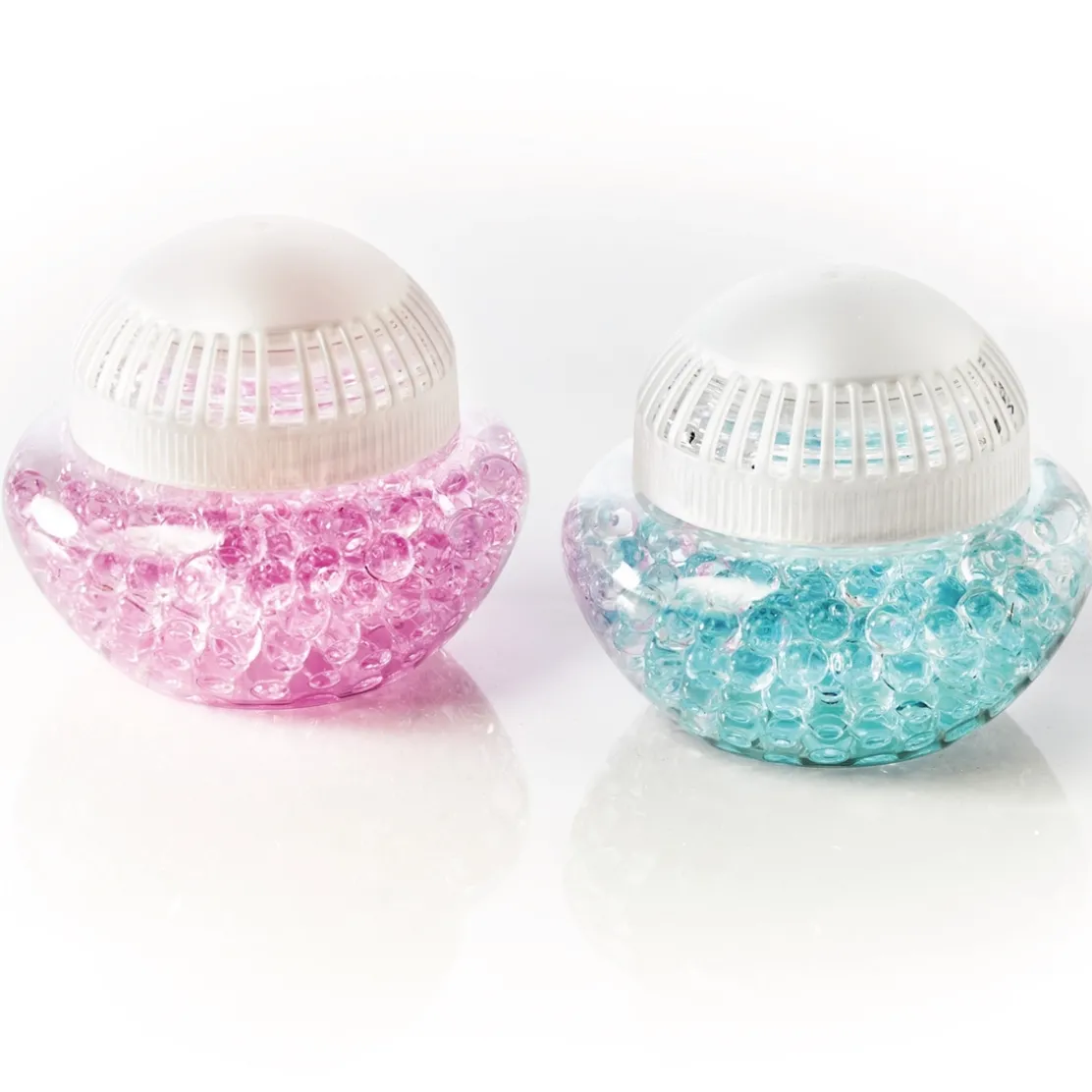 La solution pour toutes les pièces de la maison qui ont besoin d’un bon coup de frais ! Ces déosphères diffusent non seulement un parfum agréable dans la pièce mais ils neutralisent en plus les mauvaises odeurs. Une senteur rose fleurie et une senteur rose talque. Diamètre : 8,5 cm.