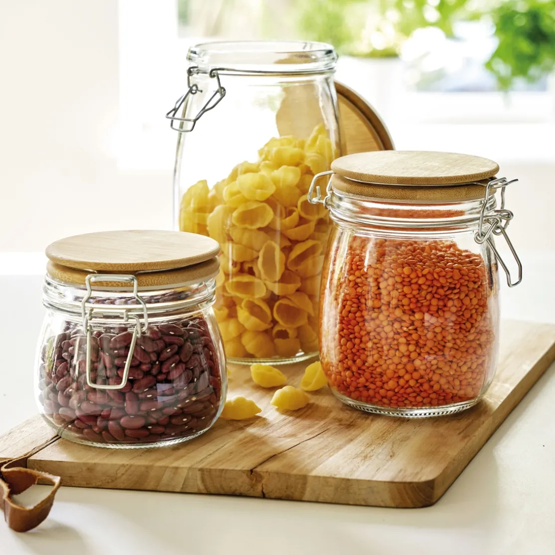 Des bocaux idéaux pour conserver les condiments, les soupes maison, les plats cuisinés, les fruits au sirop, ou même vos ingrédients secs comme les pâtes et le riz. Ce lot comprend trois capacités différentes pour s’adapter à tous vos besoins : 500 ml, 750 ml, 1500 ml.