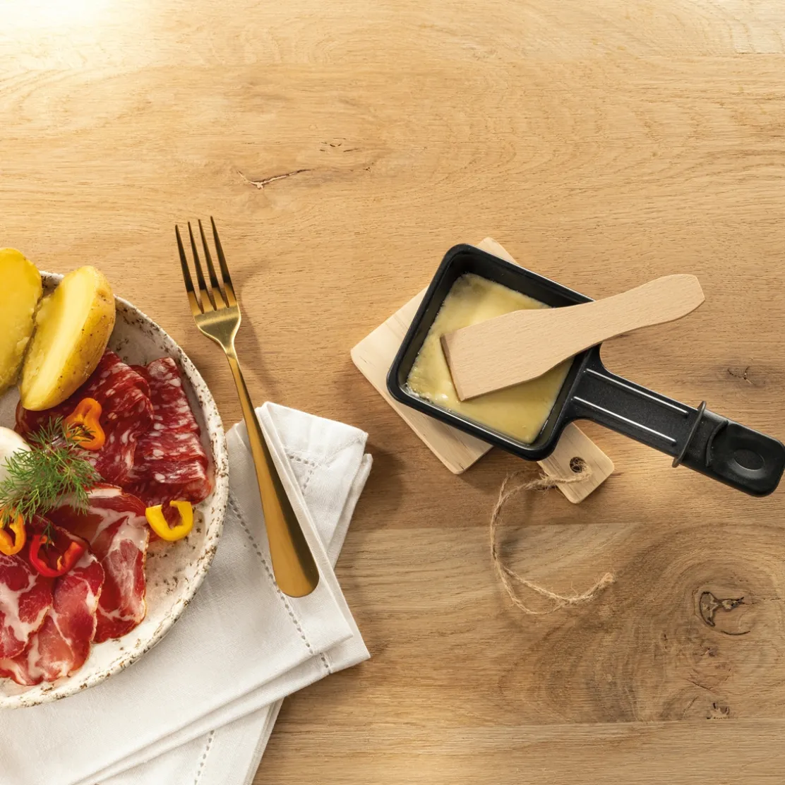 Ces 4 repose-poêlons offrent une solution élégante pour gérer les poêlons de raclette entre deux fournées de fromage… En bois. Dim. 13,4 x 10 cm.