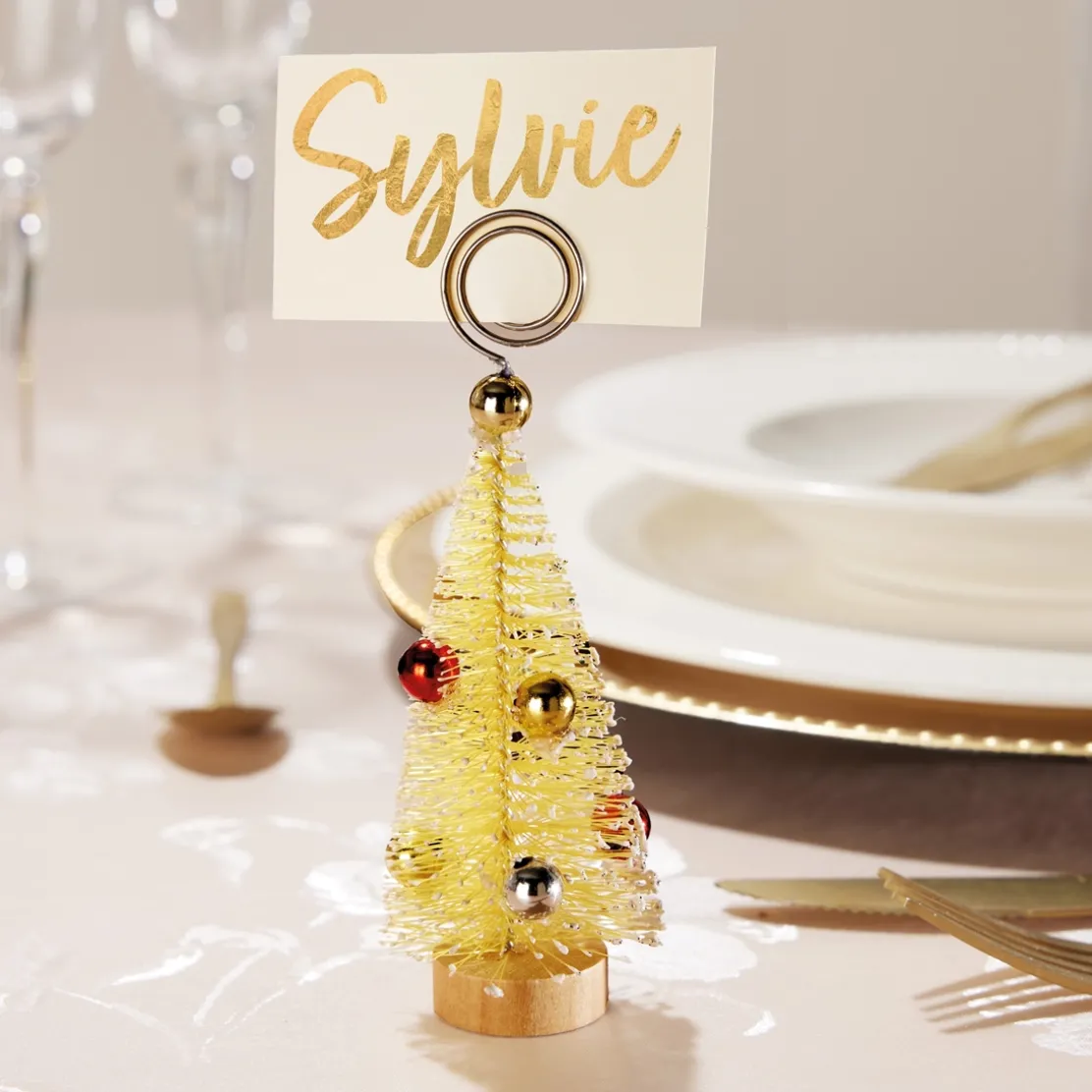 Ces 4 marque-places en forme de sapin permettent de placer vos invités autour de la table du réveillon, avec chic et originalité ! Leur raffinement et leur coloris doré s’accorderont à merveille avec votre déco de fête.