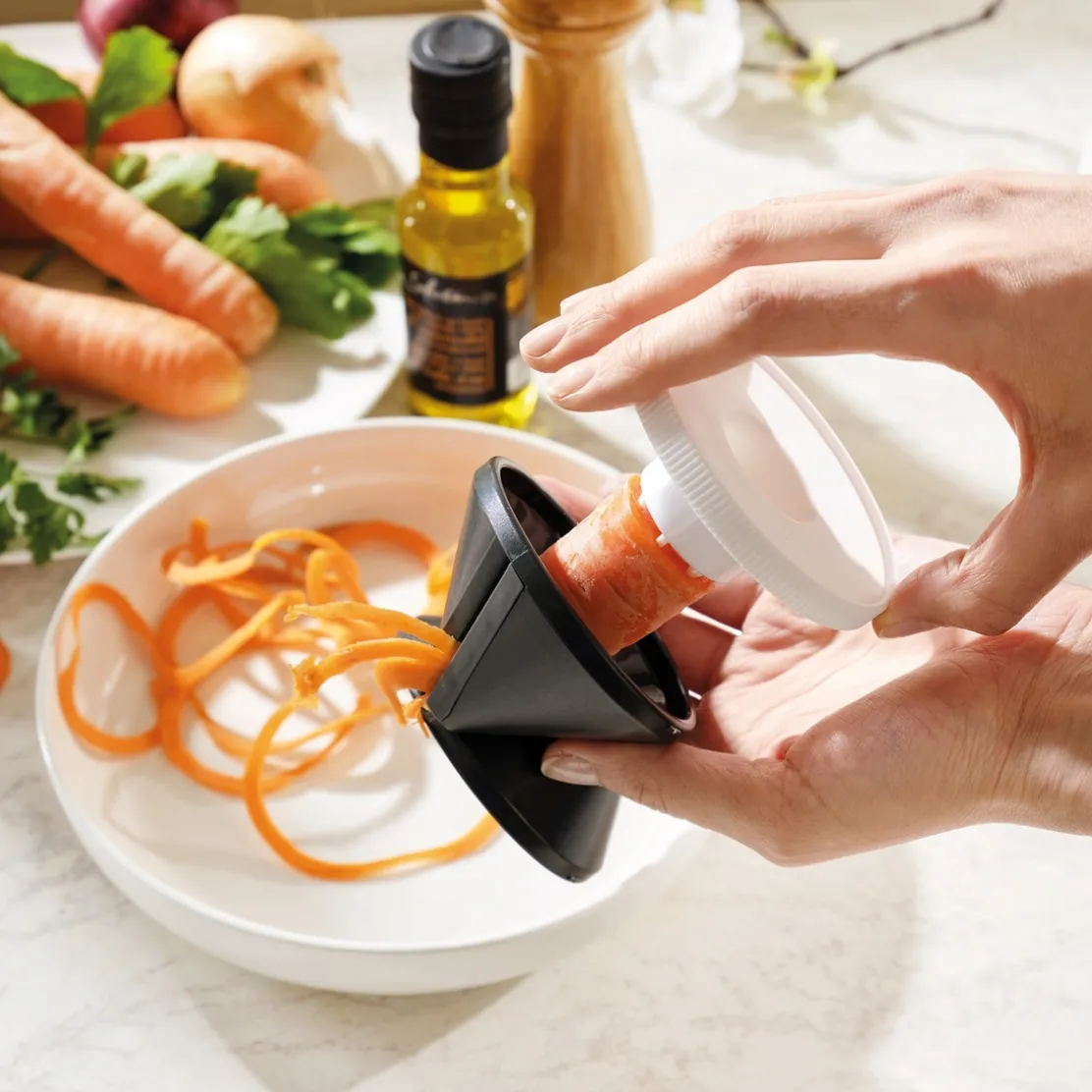 Ce kit de découpe comporte tout le nécessaire pour exprimer votre créativité en cuisine : 1 couteau à décorer, 1 taille légumes (en spirales et en spaghettis), 1 emporte-pièce cœur, 1 coupe légumes à lame ondulée, 1 boule à melon double.