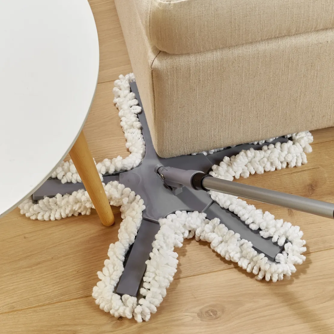 Avec ses 5 bras mobiles et son articulation à 360°, ce balai nettoie les espaces les plus réduits, les zones difficiles d’accès et atteint facilement tous les moindres recoins de la maison, sans même devoir déplacer les meubles !
