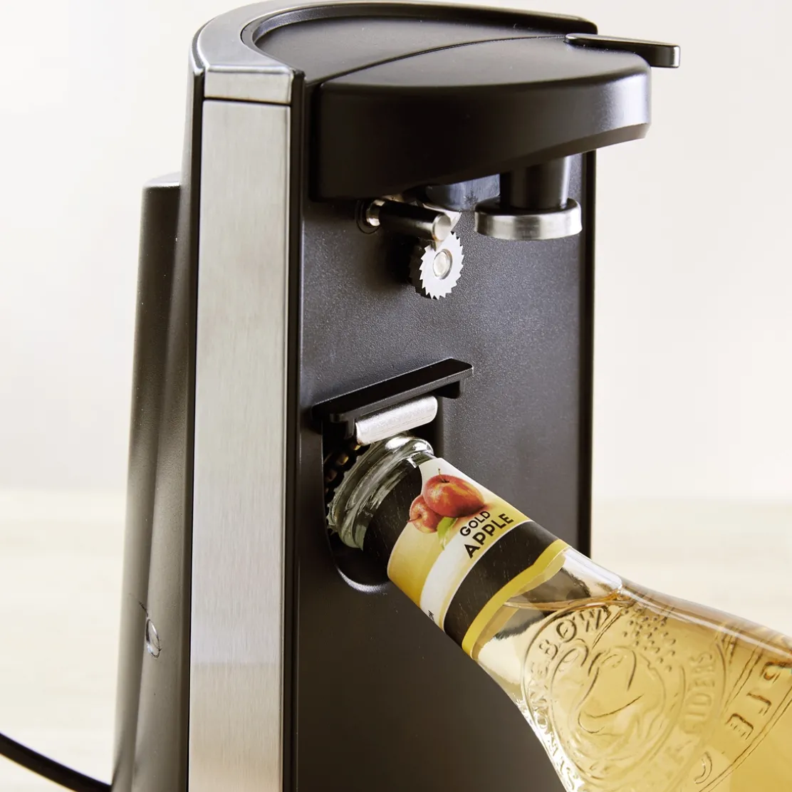 Incontournable pour ouvrir les boîtes de conserve métalliques, cet ouvre-boîte électrique fonctionne sur secteur. Il suffit de poser la conserve, d’appuyer sur le bouton pour que la boîte soit ouverte ! Très polyvalent dans la cuisine, il est également équipé d’un décapsuleur et d’un affûteur ! On adore ! Il fonctionne pour les boîtes de 0,6 kg max et de 5 à 10 cm. Dimensions : 22 x 10 centimètres. Énergie : 230 V, 50 HZ et 60 W.