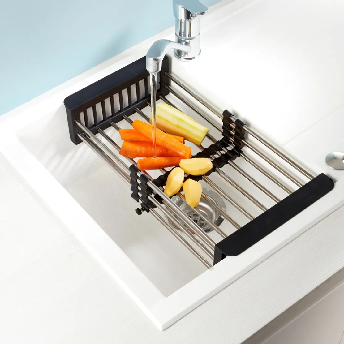 Extensible, cet accessoire de cuisine est compatible avec tous les éviers. Peu encombrant et offrant pourtant un volume de grande capacité, ce panier ajouré s’utilise pour laver les légumes, égoutter des fruits, sécher la vaisselle… au-dessus de l’évier