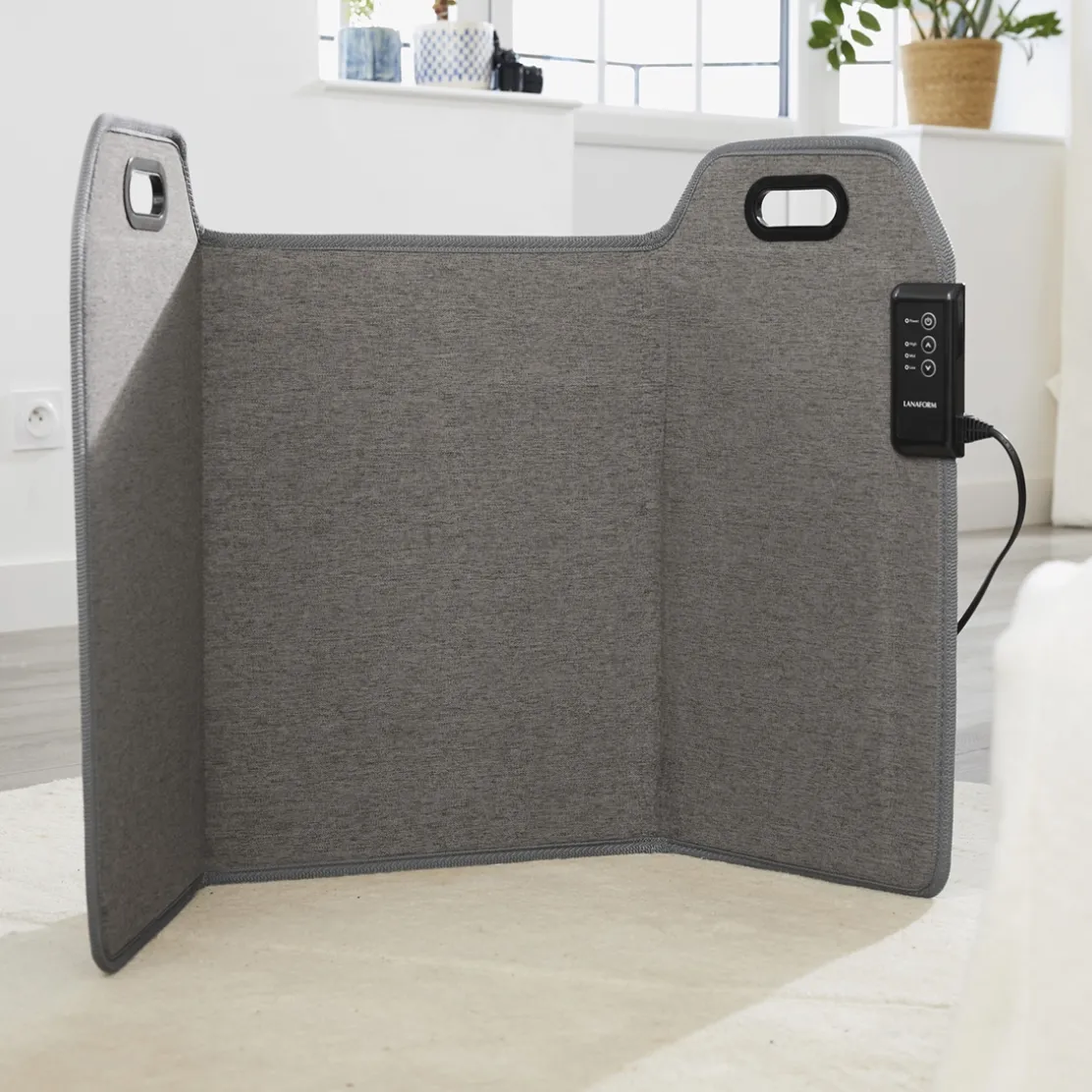Enveloppez-vous de douceur avec ce panneau chauffant ! Sa chaleur infrarouge pénètre en profondeur pour vous réchauffer efficacement. Grâce à ses 3 niveaux de température réglables, vous choisissez la chaleur idéale pour vos pieds, vos jambes ou tout autre endroit de votre corps. Ultra-fin et léger, il se glisse partout et se range facilement.