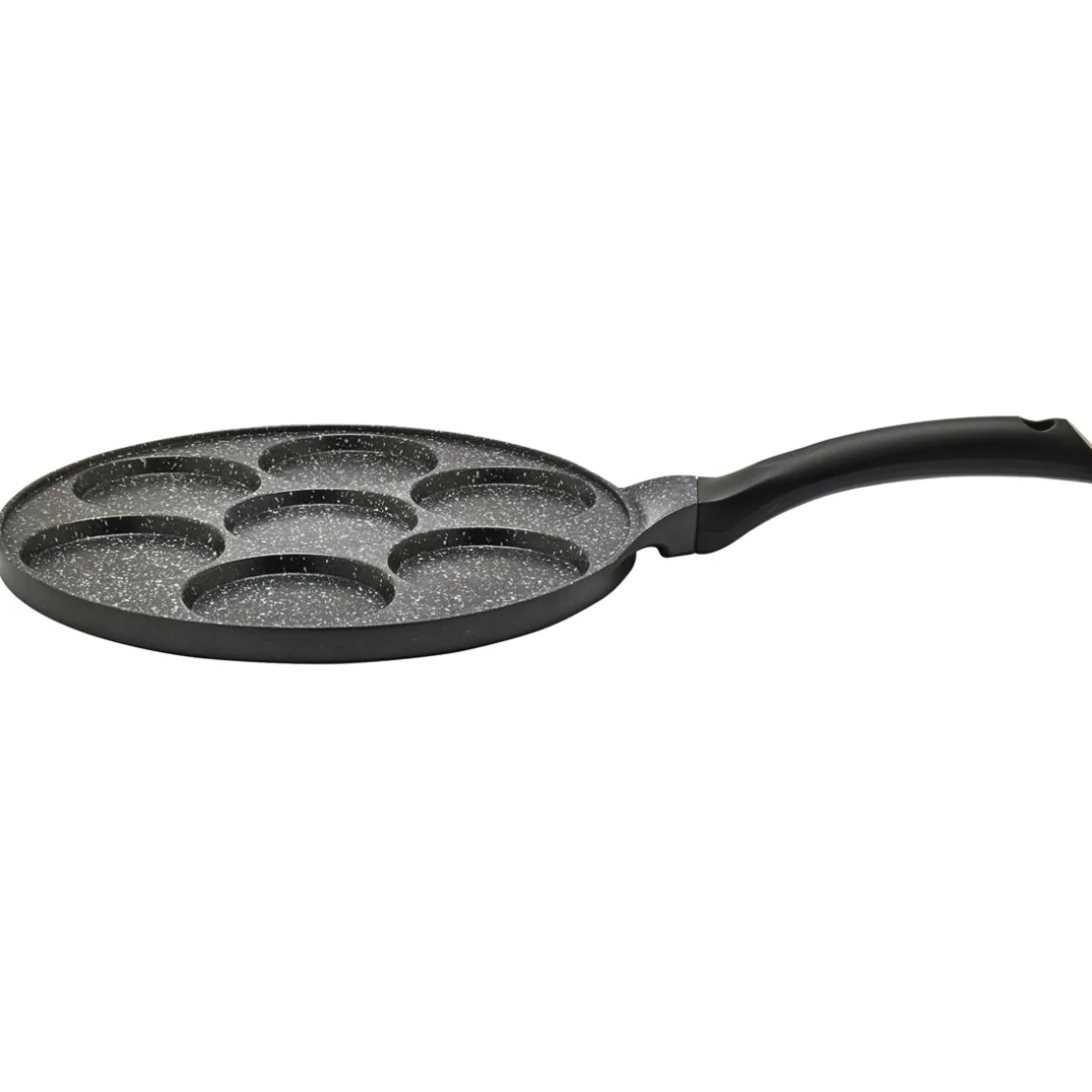 Légère et facilement maniable, la poêle à blinis ou à mini pancakes est conçue avec un corps en fonte d’aluminium et un revêtement intérieur effet pierre aux propriétés anti-adhérentes multicouches, sans PFOA.