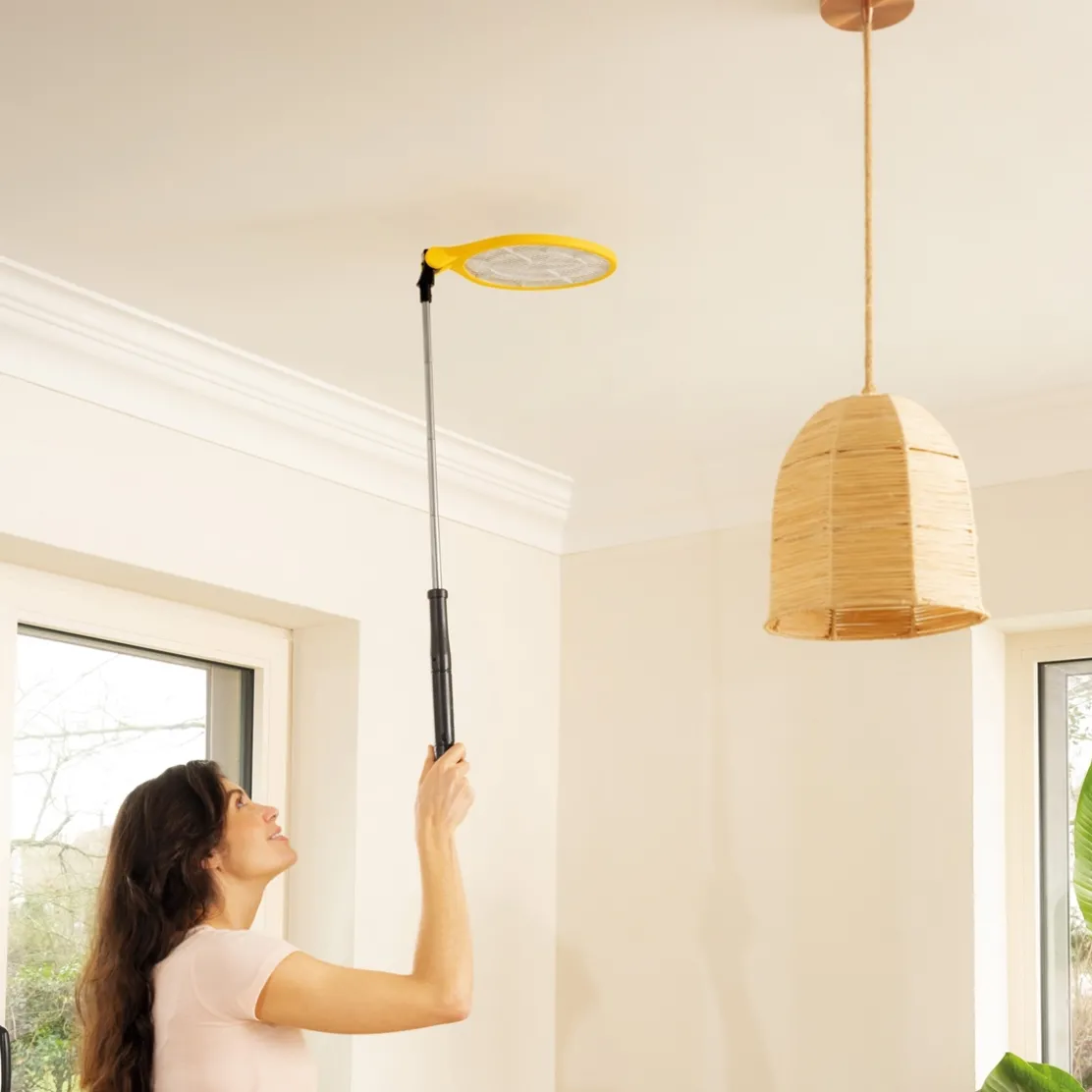 Avec son manche télescopique (jusqu’à 1 mètre) et sa tête pivotante, cette raquette est l’arme redoutable pour vous débarrasser, à coup sûr, des insectes volants : où qu’ils se trouvent, même au plafond, vous avez la garantie de les atteindre tous, avec précision !