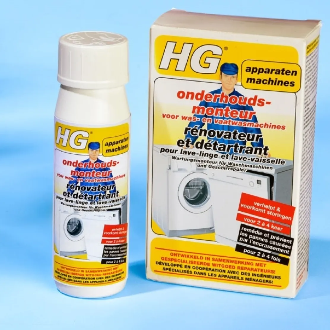 A l’origine de nombreuses pannes, les dépôts de calcaire, savon et saletés provoquent un encrassement et une usure des pièces de votre lave-linge et de votre lave-vaisselle. En utilisant ce produit en prévention une fois tous les 3 mois, vos appareils seront préservés ! Il suffit de faire un programme haute température à vide après avoir versé 1 flacon dans le lave-linge ou ½ flacon dans le lave-vaisselle. 2 flacons de 100g. Mode d’emploi fourni.