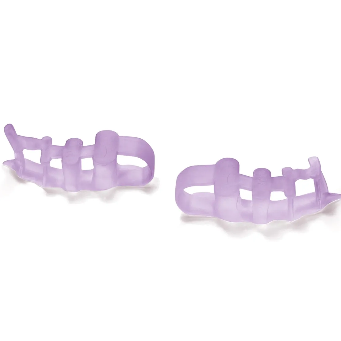 Ces séparateurs aident à réduire les irritations, chevauchements d’orteils et la formation de cors… et sentent bon la lavande ! Fabriqués en silicone souple, ils sont très confortables à porter, restent bien en place et ne vous empêchent pas de vous chausser normalement. Vous les oublierez rapidement ! Vendus par paire (pied droit et gauche). En silicone transparent. Lavables à l’eau savonneuse. Longueur 9,7 cm.