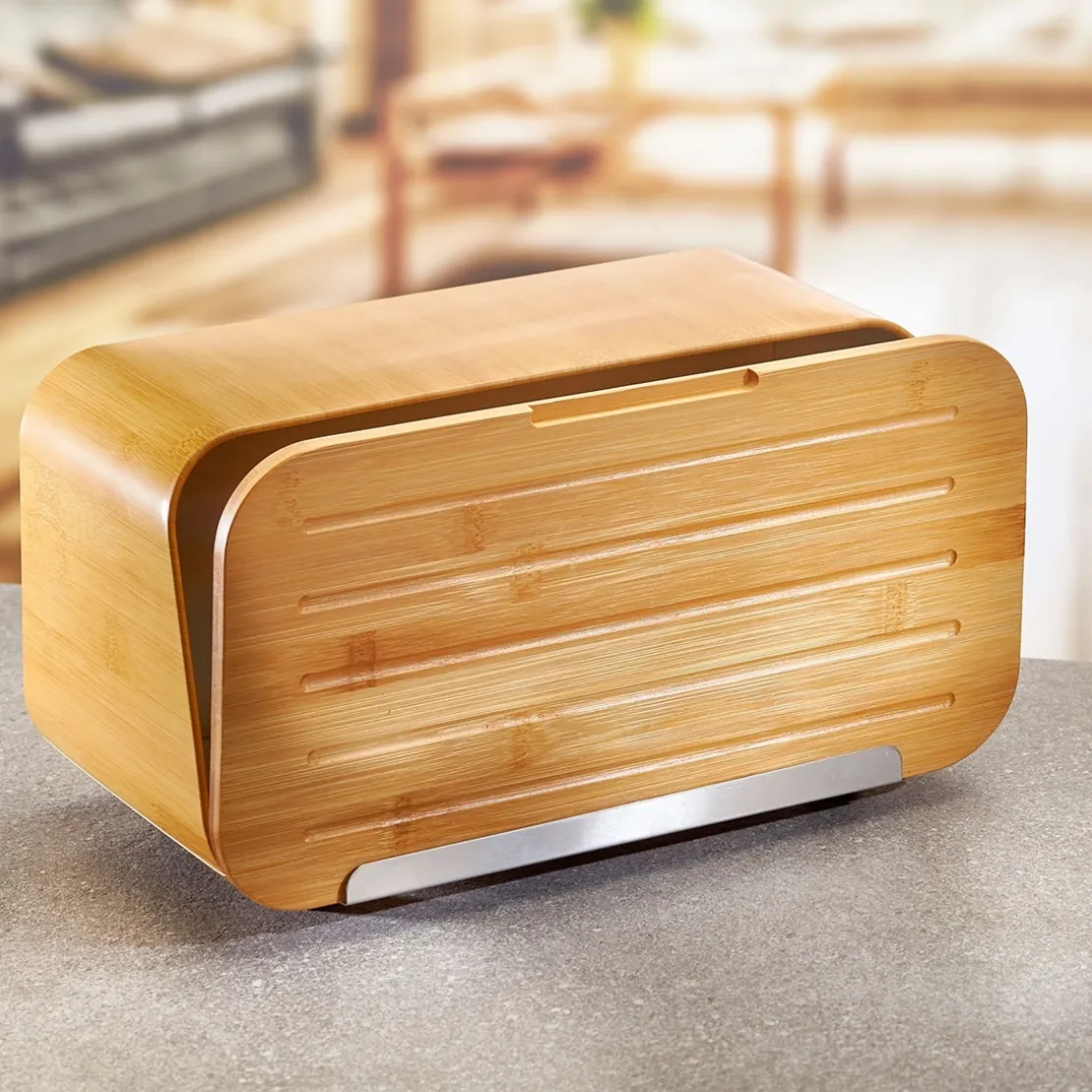 Très élégante cette boîte à pain s’intègre parfaitement dans toutes les cuisines ! Elle conserve efficacement la fraîcheur des pains et viennoiseries et sa porte en bambou sert astucieusement de planche à découper.