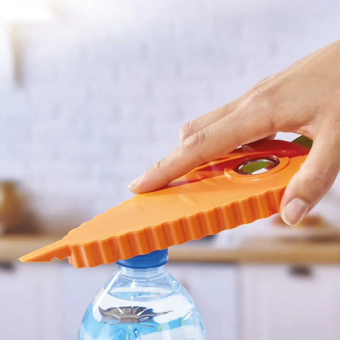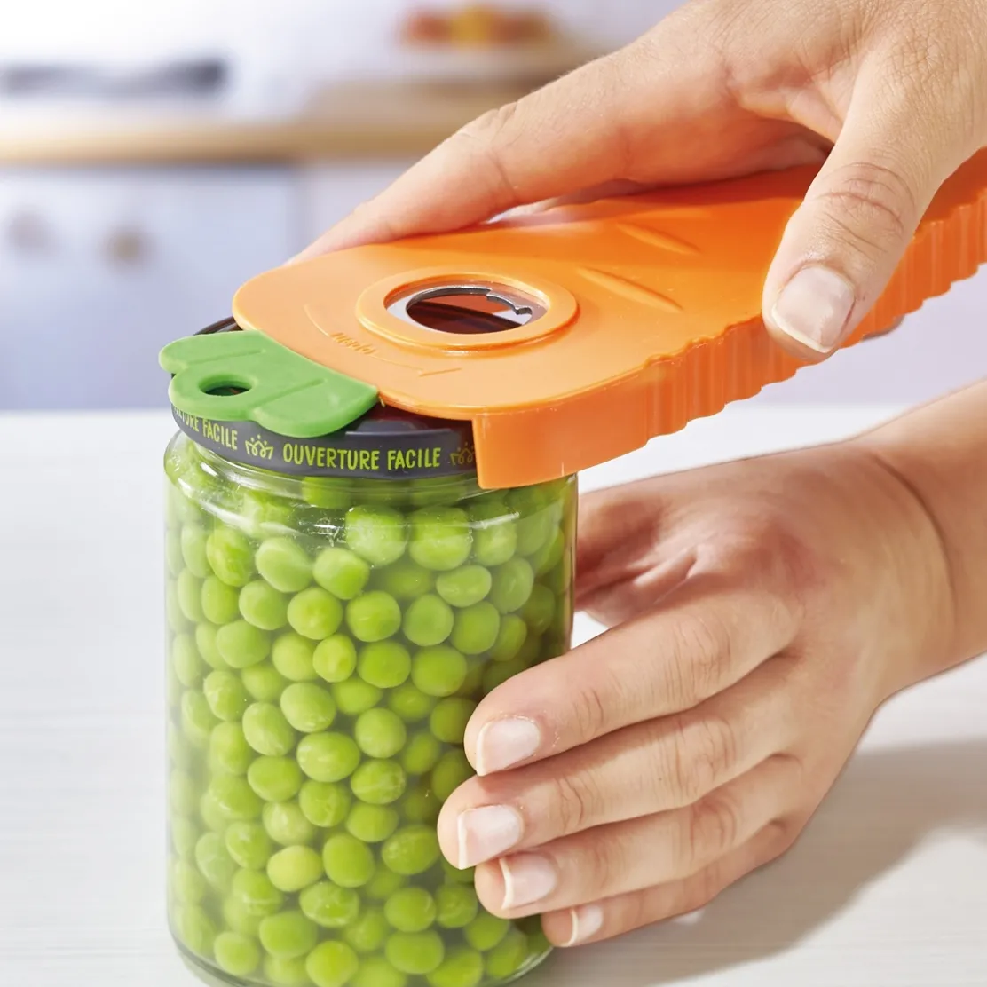 Bocaux, bouteilles, canettes : cette carotte ludique vous aide à les ouvrir facilement et sans force ! Elle procure une excellente prise en main et sa forme trigone permet de s’adapter à toutes les tailles de bocaux.