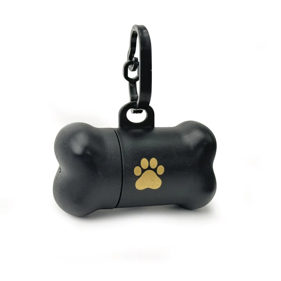 En forme d’os, ce distributeur de sacs est conçu avec un mousqueton pour s’accrocher facilement à votre ceinture ou à la laisse et bénéficie d’une tige pour maintenir le rouleau bien en place. Un petit format pratique qui s’emmène partout avec soi !