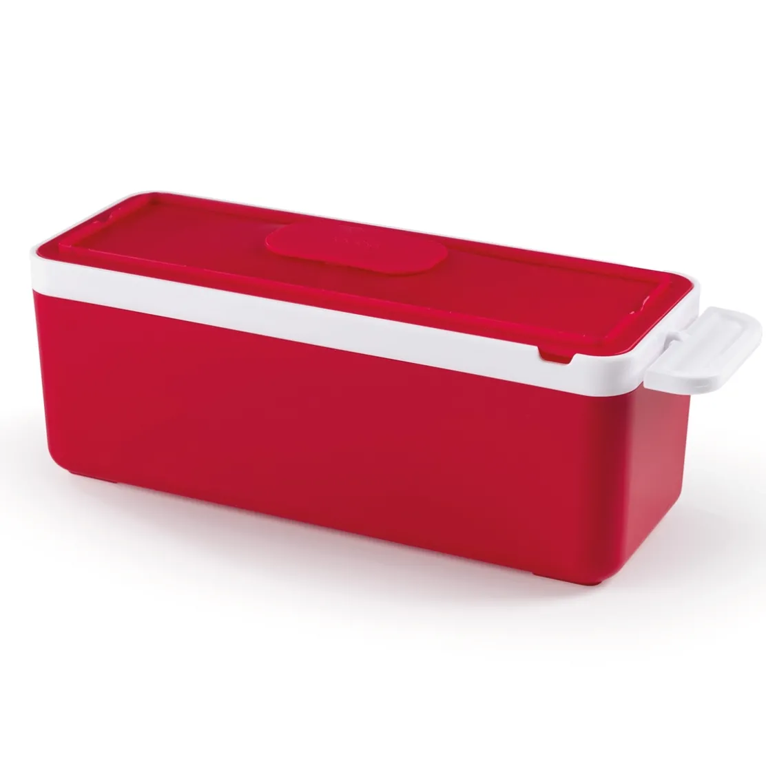 Astucieux, ce moule à glaçons est doté d’une réserve. Elle permet donc de faire des glaçons, de les stocker en dessous par un système pivotant et refaire aussitôt une tournée de 12 glaçons ! Pourvue d’une petite pelle de service bien pratique.
