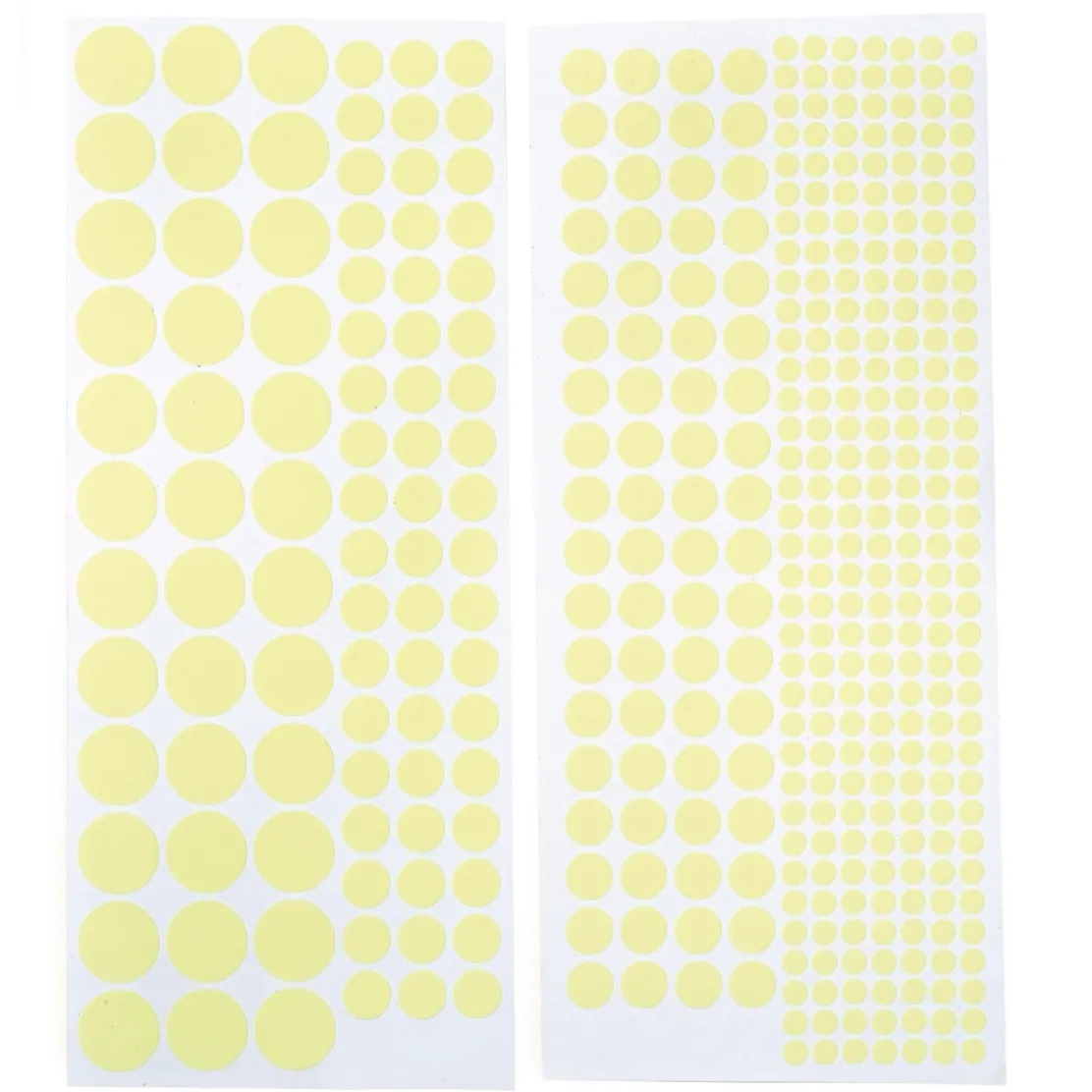 Grâce aux propriétés phosphorescentes de ces stickers, vous pourrez rendre visibles ce que vous souhaitez, apporter des points de repère dans votre intérieur et ainsi sécuriser vos déplacements dans l’obscurité : interrupteurs, serrures, poignées, marches d’escalier, …Collez-en partout ! En matière plastique. 36 pièces : 1.5 cm ; 126 pièces : 0.9 cm et 245 pièces : 0.5 cm.