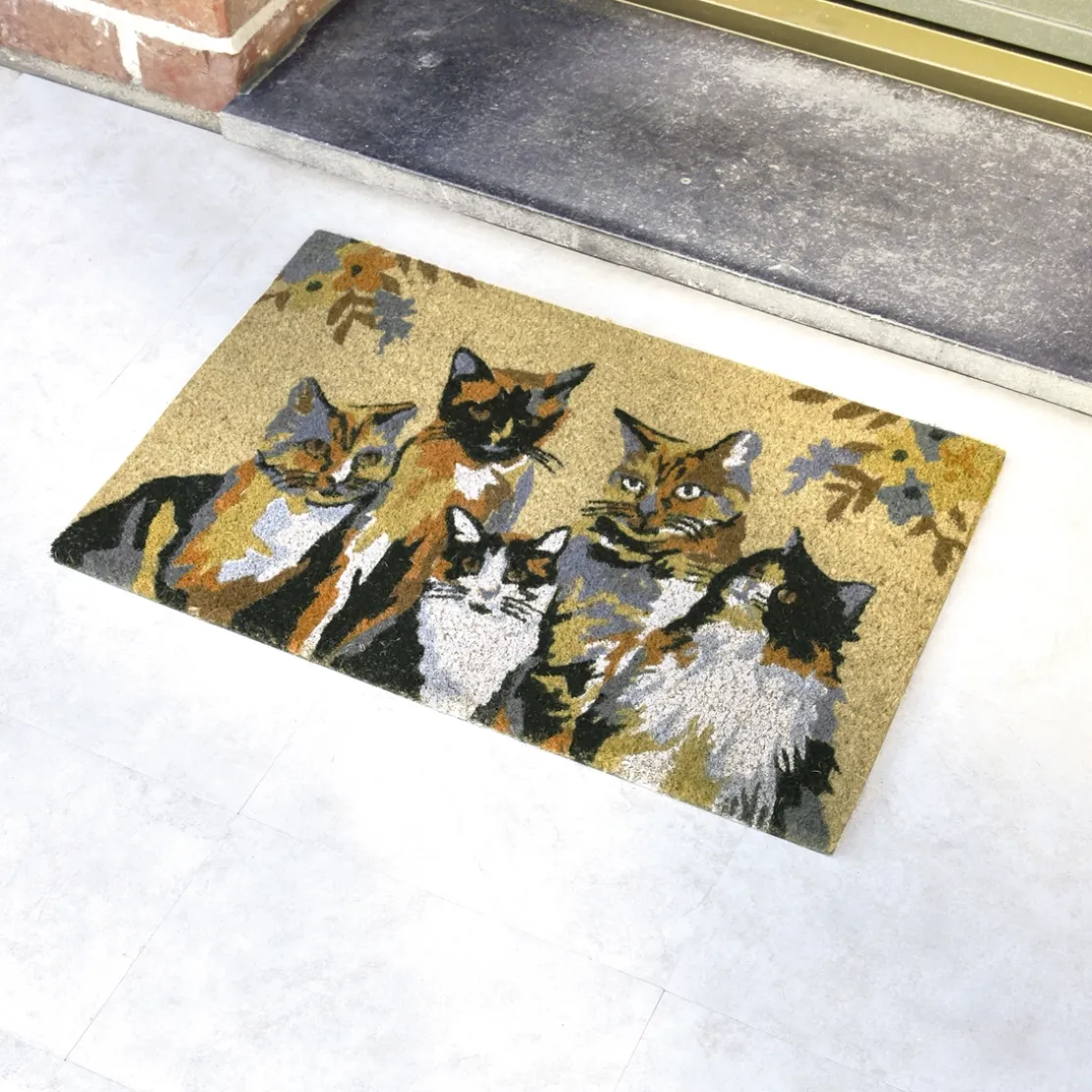La matière coco, absorbante et grattante, n’a pas son pareil comme paillasson d’entrée… Mais quand, en plus, elle se pare d’un motif aussi joli que cette famille de chats, elle devient un élément de décoration à part entière !