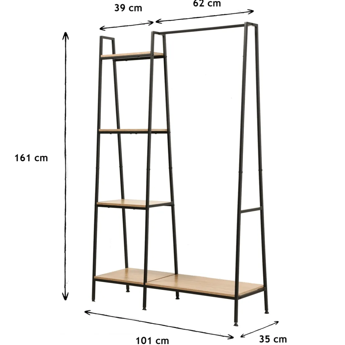 Meublez votre entrée ou une chambre avec cette élégante penderie accompagnée de 4 étagères : vous pourrez y suspendre vos vêtements mais aussi y disposer vos chaussures, de la, des plantes et/ou des boîtes de rangement.
