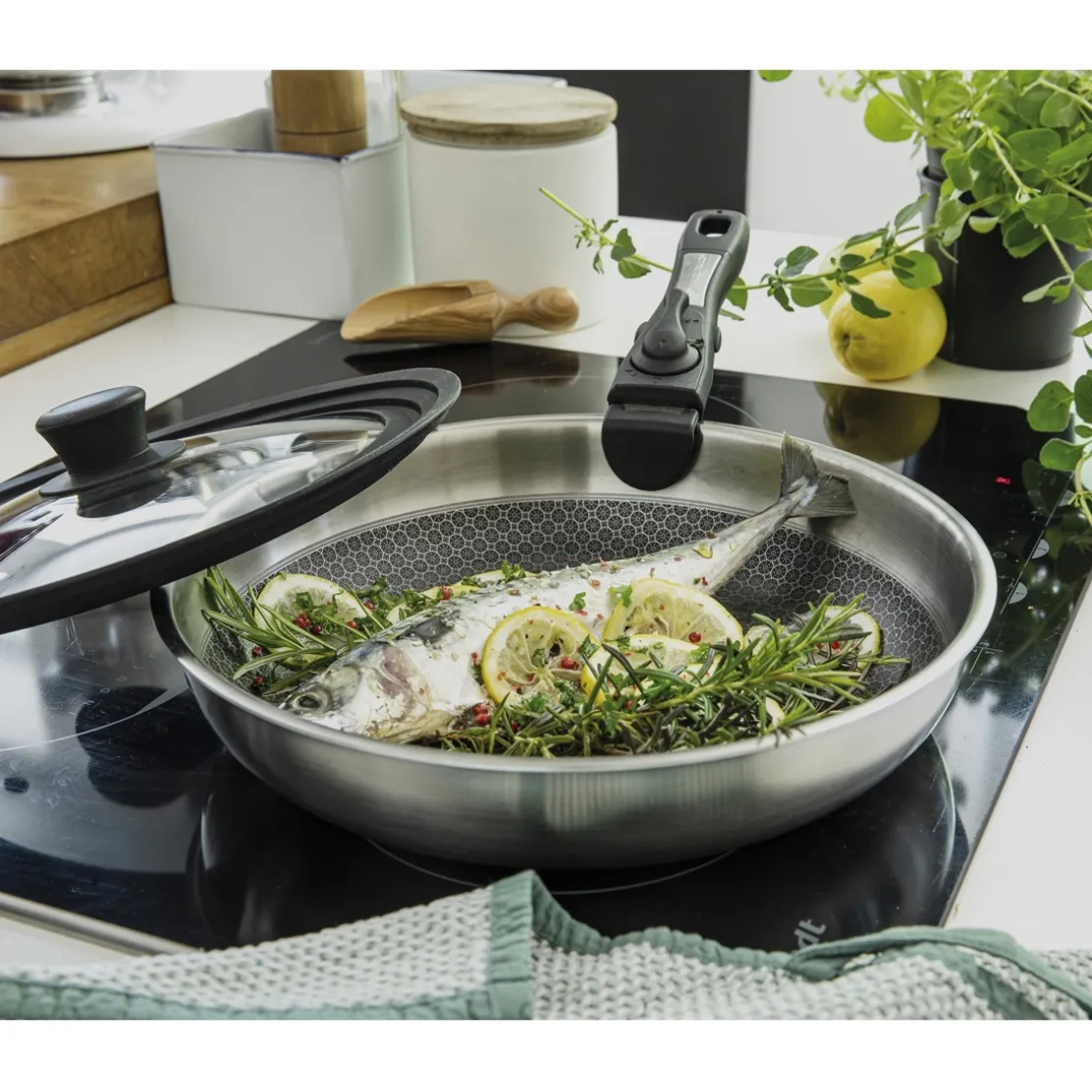 Cette poêle offre une cuisson homogène en n’utilisant que peu de matière grasse. Un ustensile de cuisson parfait pour cuire, dorer et colorer poissons, viandes et légumes en toute simplicité !