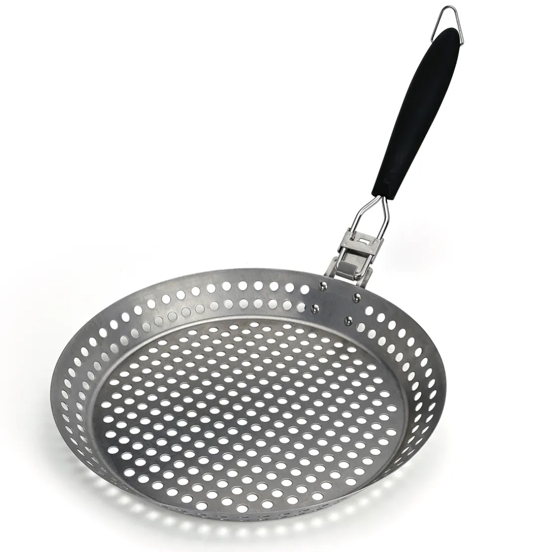 Cette poêle spéciale barbecue est dotée de perforations qui assurent une cuisson homogène et un goût fumé authentique. Sa poignée amovible facilite le rangement et le nettoyage.